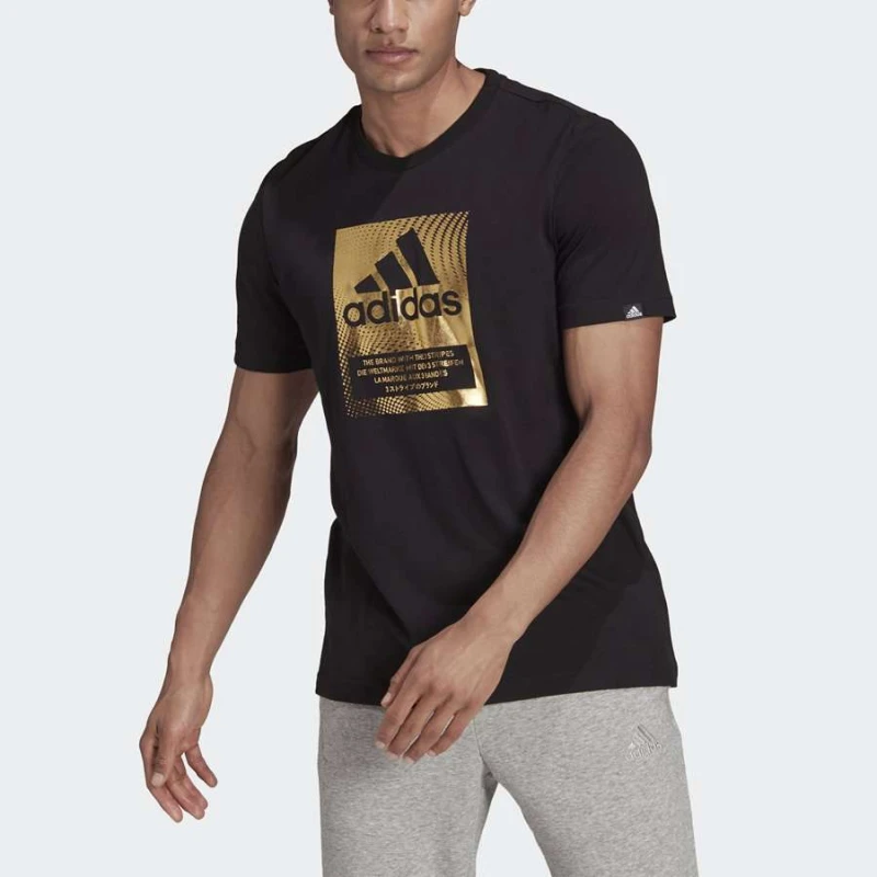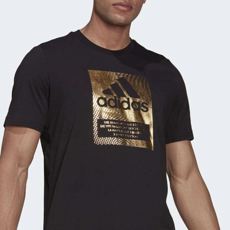 CAMISETA ADIDAS ESTAMPADA FOIL LOGO BOX MASCULINA - Preto/dourado