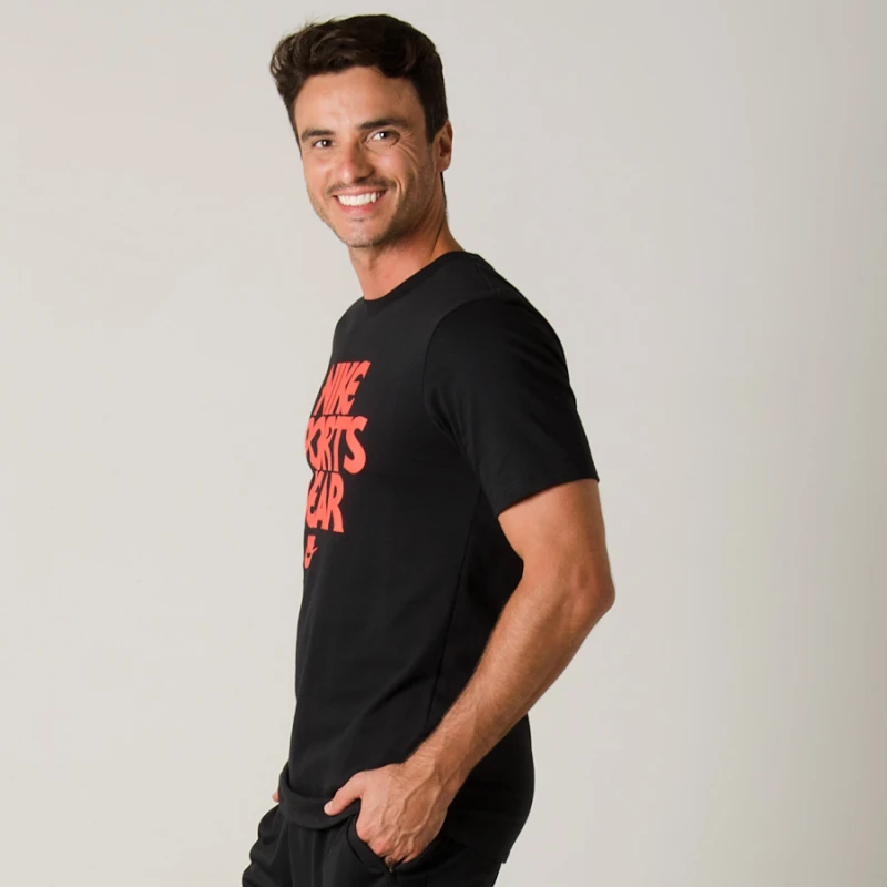 Medidas do modelo Julian que veste a Camiseta Nike Nsw Tee Concept Blue 2 Masculina na cor: Preto/Vermelho no tamanho: M