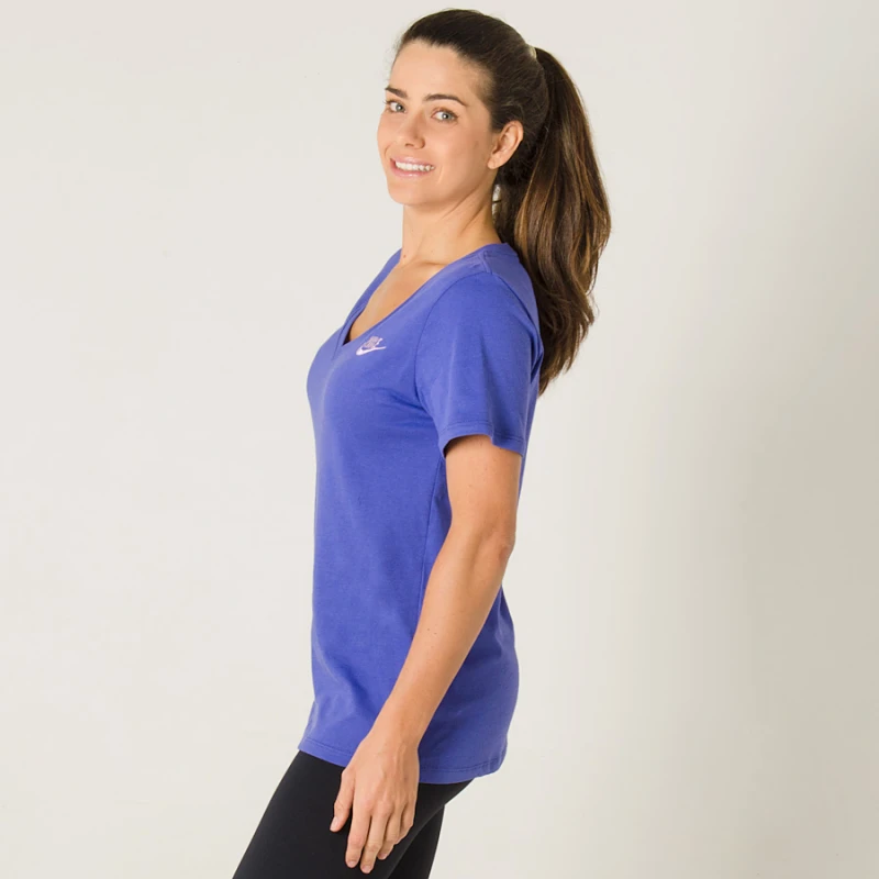 A Camiseta Nike Nsw Tee Vnk Futura Feminina possui decote V e modelo super esportivo.