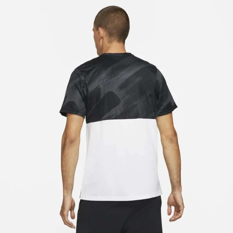 Parte da coleção Sport Clash da Nike, que combina treino com energia moderna, a camiseta apresenta estampas pinceladas que representam a fluidez e a criatividade usadas no treino para seu esporte.