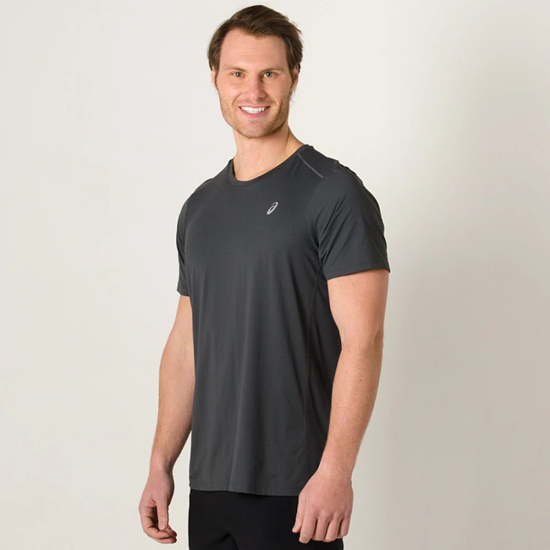 Com gola careca, a Camiseta Asics Legends SS Masculina oferece detalhes refletivos que aumentam a visibilidade em locais de pouca luz, facilitando os treinos noturnos.