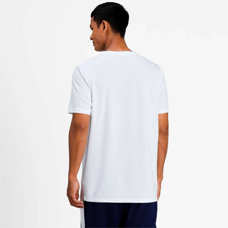Esta camiseta foi confeccionada com a tecnologia dryCELL que oferece recursos inteligentes de absorção de umidade, costura plana e elementos de design refletivos.