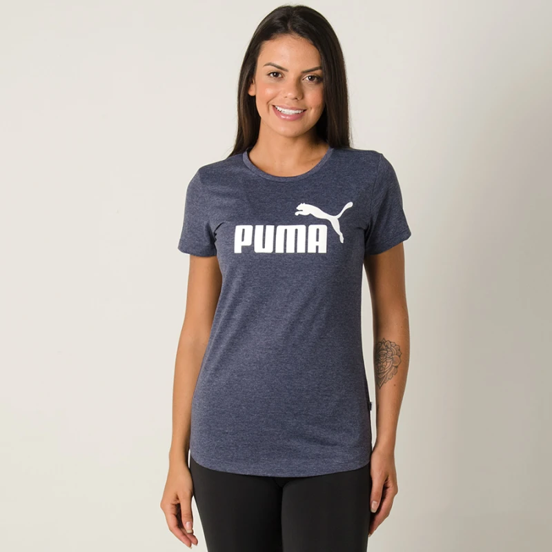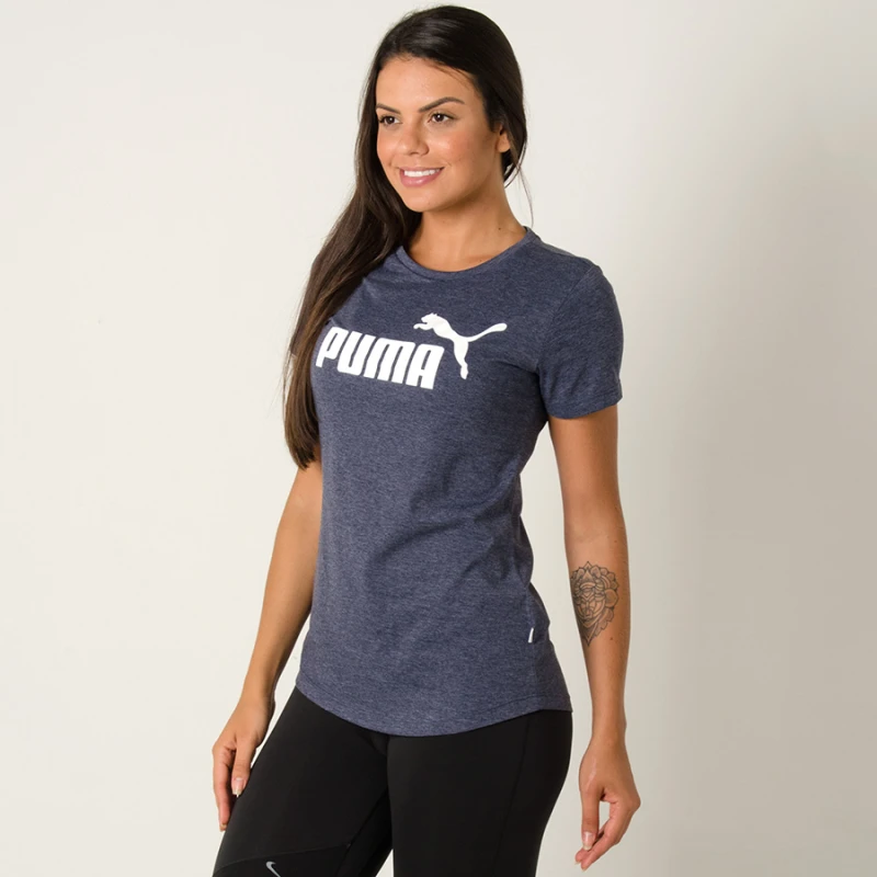 CAMISETA PUMA ESS LOGO HEATHER TEE FEMININA - Azul