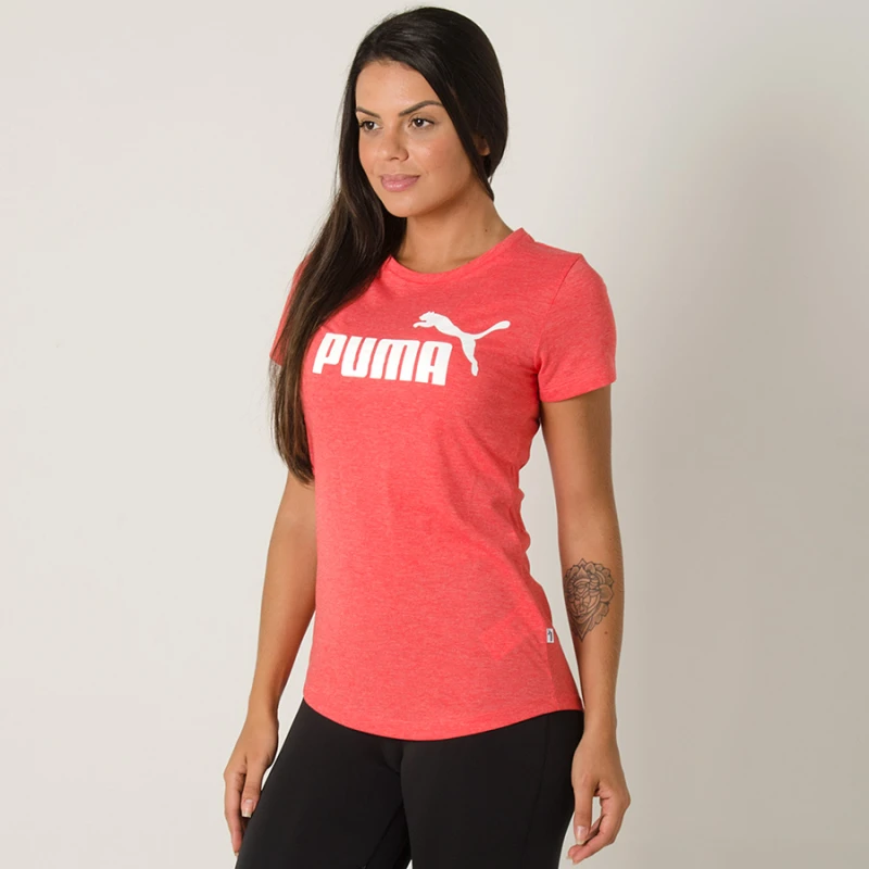 Com modelagem regular fit, a Camiseta Puma Ess Logo Heather Tee Feminina conta com barra curvada que garante o tom jovem e despojado.