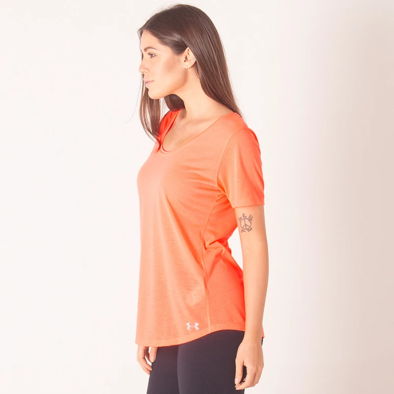 A Camiseta Under Armour Streaker Feminina é ideal para academia, treinos de corrida e em outras atividades físicas.
