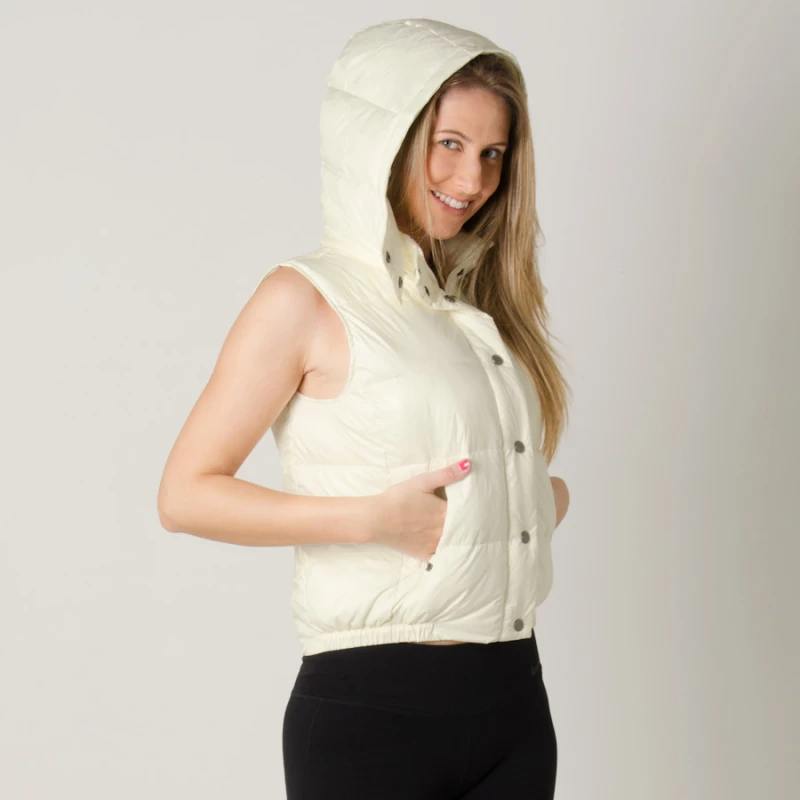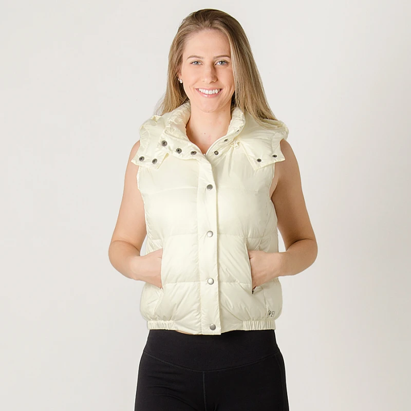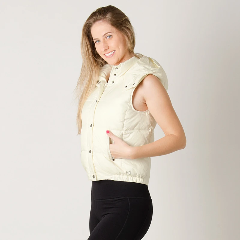 Confeccionado em poliamida e recortes em matelassê, o Colete Live Outdoor Gym Feminino possui fechamento em zíper e botões de pressão, além de capuz removível e bolsos laterais.