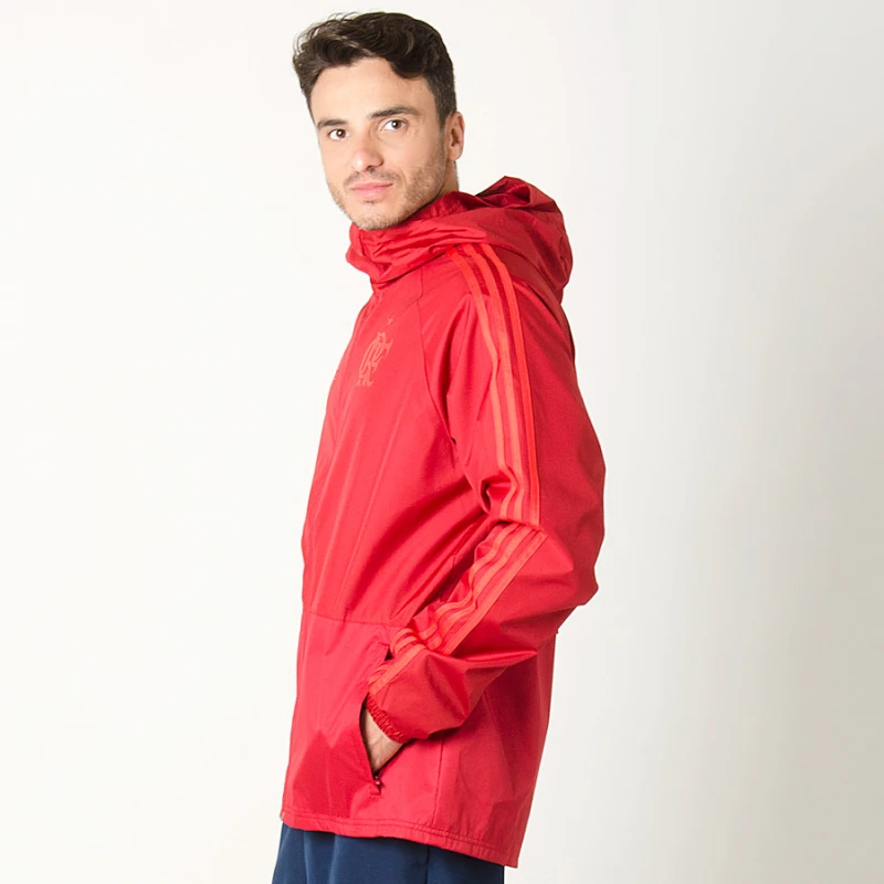 A Jaqueta adidas Chuva Flamengo Masculina mantém seu corpo seco independente do clima.