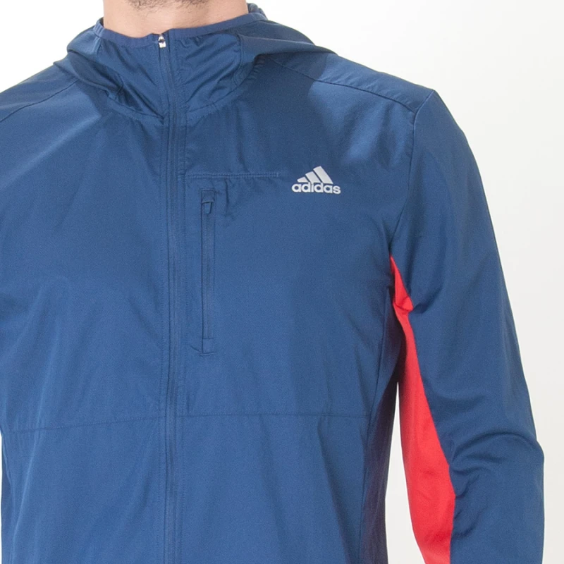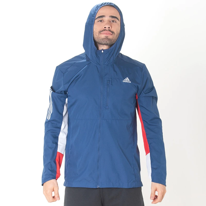 Esta Jaqueta Corta Vento adidas Own The Run Masculina tem acabamento impermeável e capuz ajustável para oferecer um alívio contra o mau tempo.
