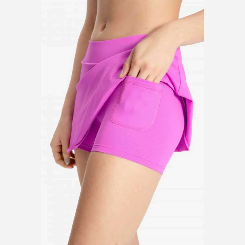 Saia em shape soltinho e confortável para as práticas esportivas.