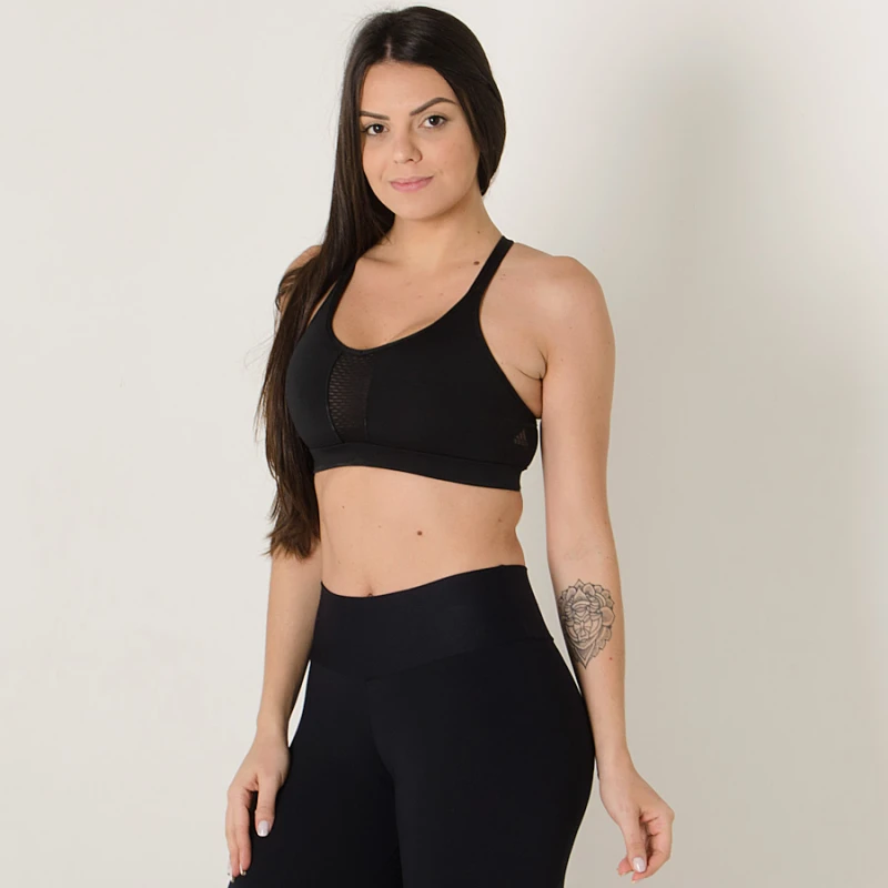 Medidas da modelo Jaqueline que veste o Top adidas Mobility Basic Feminino na cor: Preto no tamanho: P