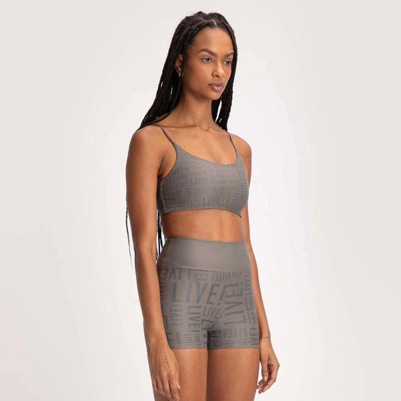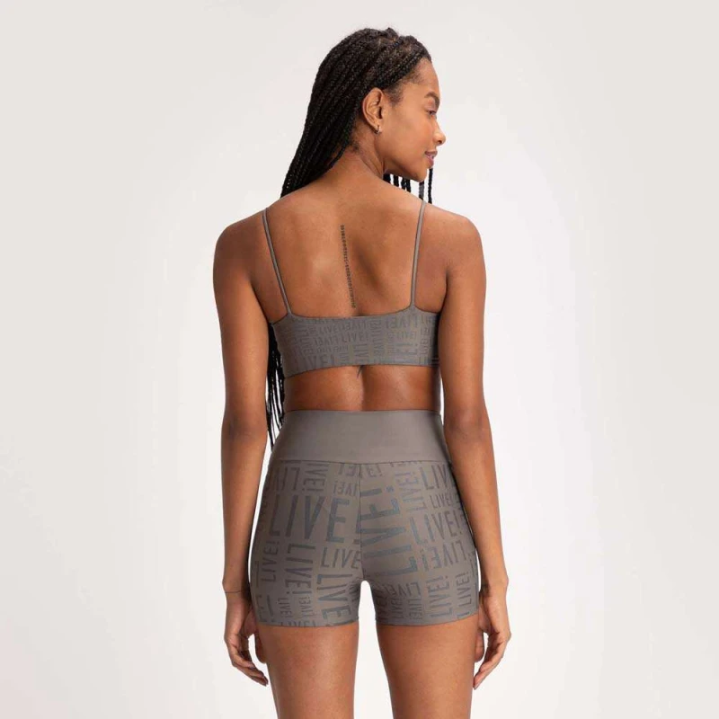 Top faixa LIVE com bojo removível, alças finas e signature da marca.