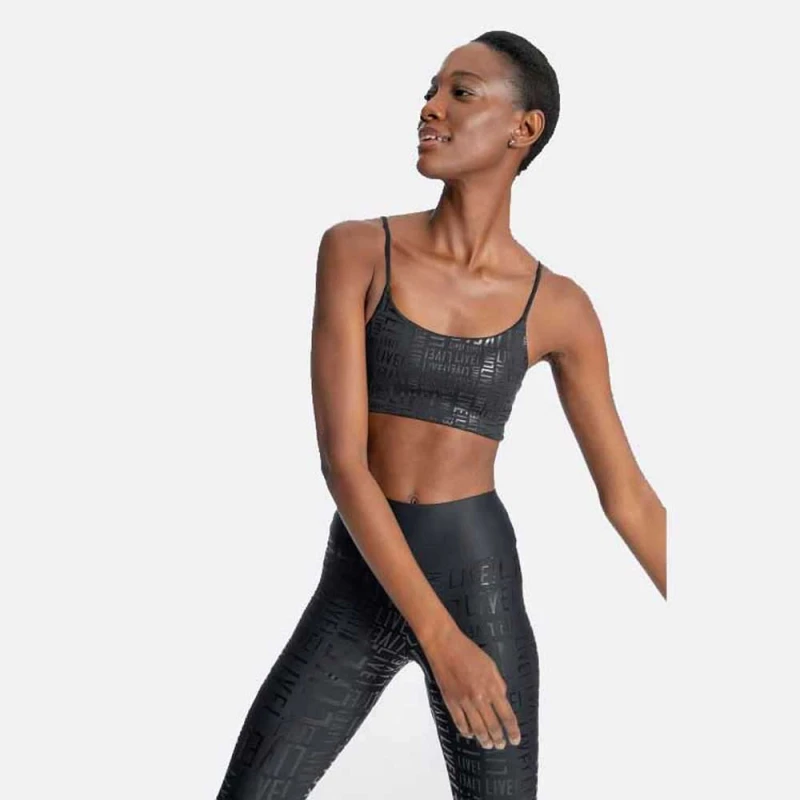 Top faixa LIVE com bojo removível, alças finas e signature da marca.