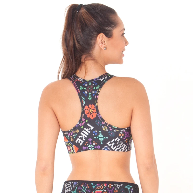 O Top Nike Victory Estampado Feminino de ginástica de suporte médio foi projetado para atividades como ciclismo, corrida ou treinamento na academia.