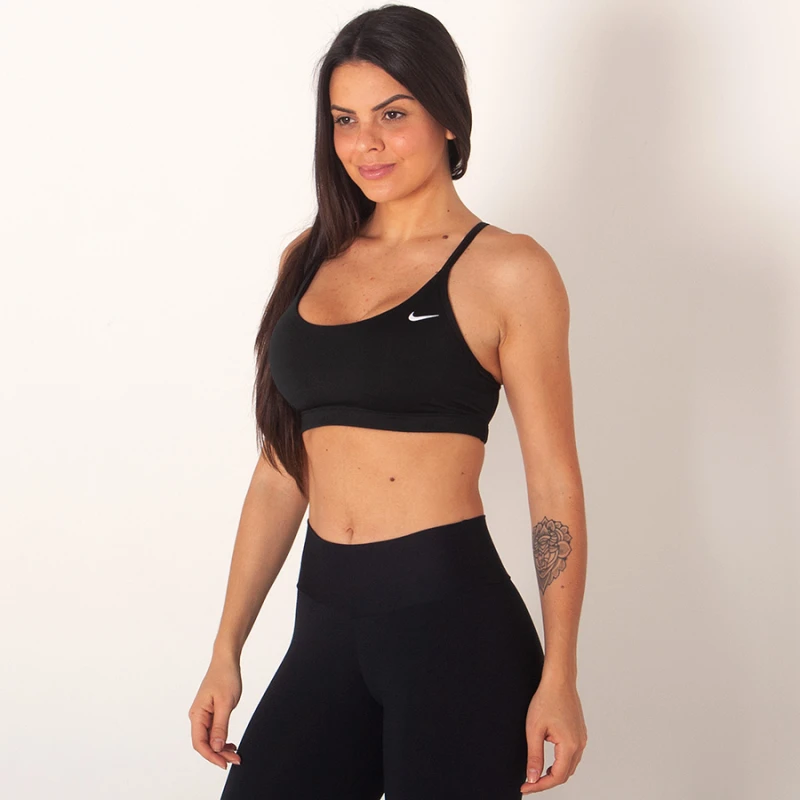 Medidas da modelo Jaqueline que veste o Top Nike Victory Favorites Feminino na cor: Preto no tamanho: M