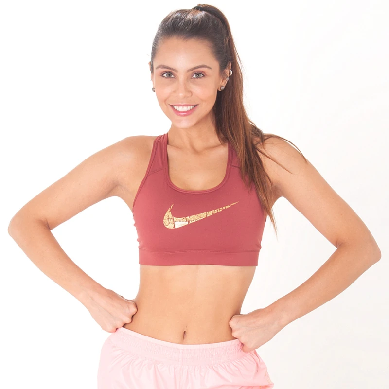 O Top Nike Victory Liso Feminino de ginástica de suporte médio foi projetado para atividades como academia, spinning, cross training e corrida.