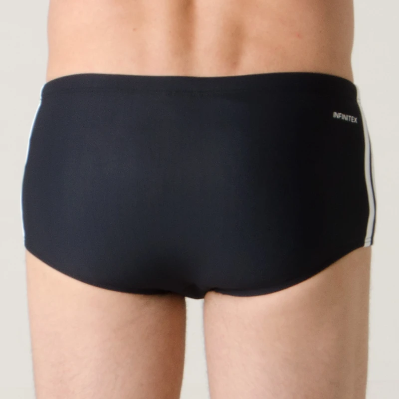 Feita para a praia, mas forte o bastante para a piscina, esta sunga é confeccionada com o tecido INFINITEX, que é leve e não deforma, por resistir aos efeitos do cloro.