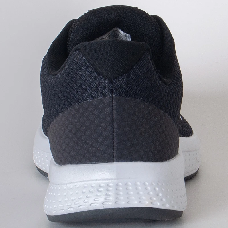 Possui cabedal confeccionado em material sintético e malha mesh que auxilia na respirabilidade dos pés.