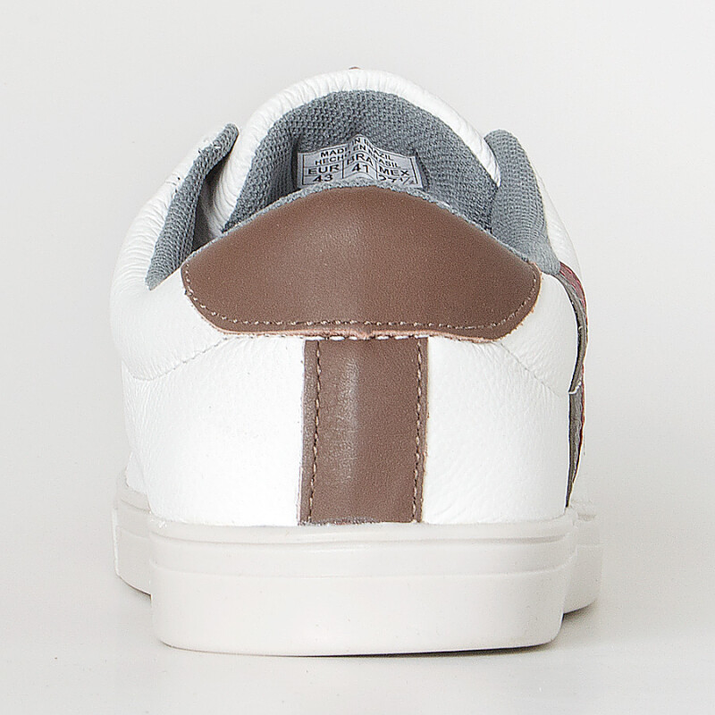 Possui cabedal confeccionado em couro sintético de ótima durabilidade, e interior composto de material têxtil.