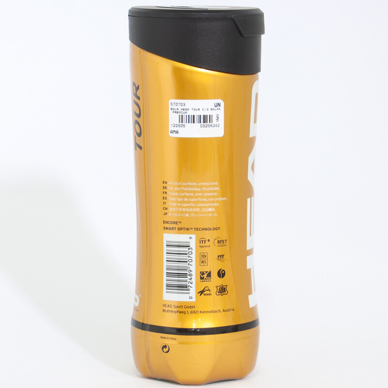 Líder das bolas de torneio da HEAD, a HEAD TOUR apresenta a nova tecnologia Encore, que garante mais resistência, e o feltro SmartOptik para maior visibilidade.