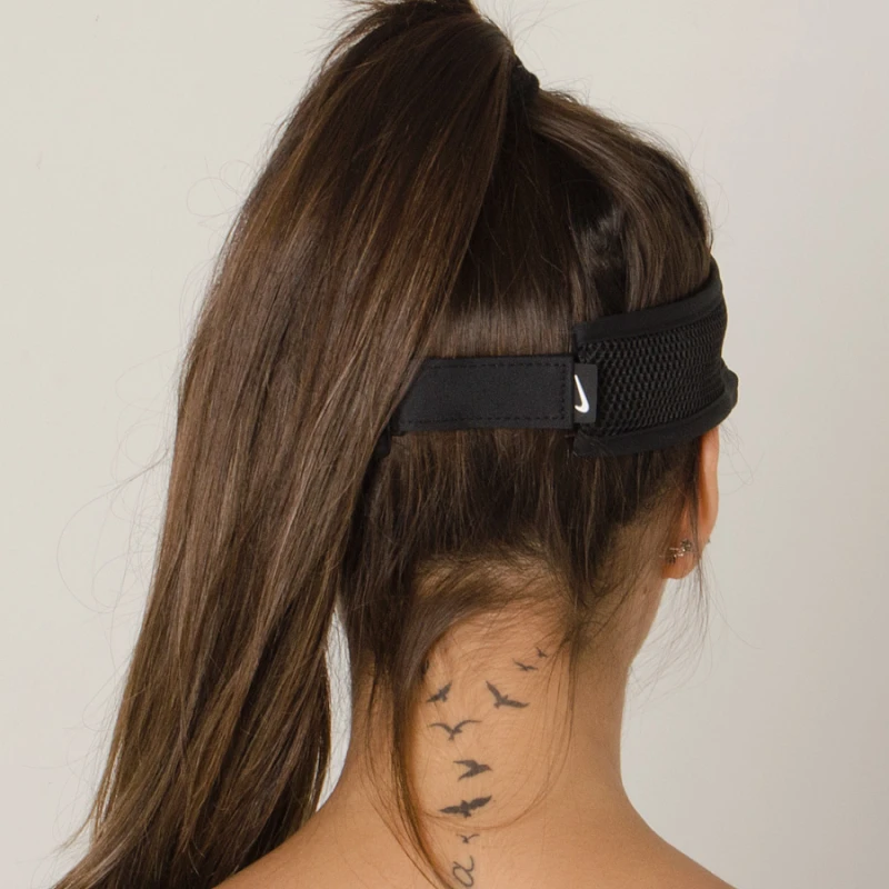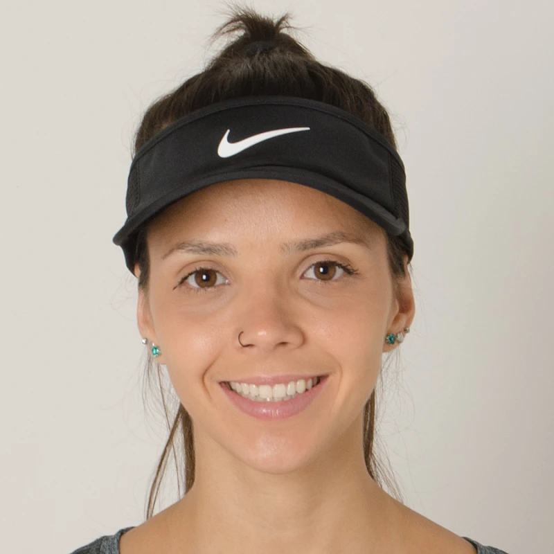 Medidas da modelo Tayse que usa a Viseira Nike Aerobill Featherlight na cor: Preto/Branco