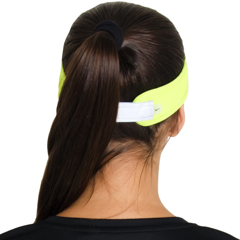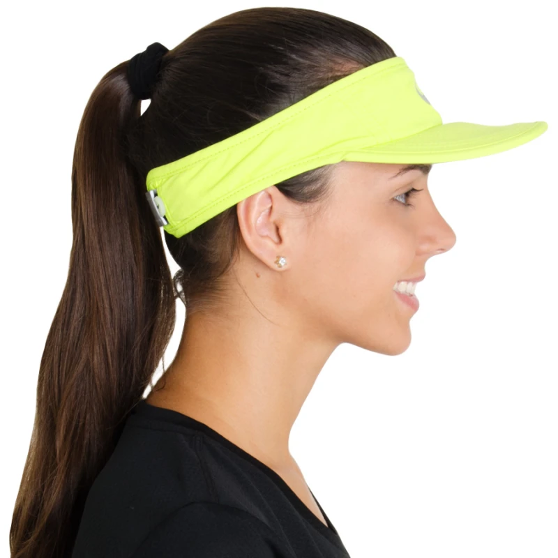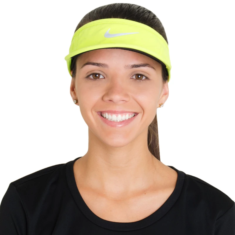 Medidas da modelo Tayse que usa a Viseira Nike AW84 Visor nas cores: Verde, Amarelo, Roxo e Roxo/Prata