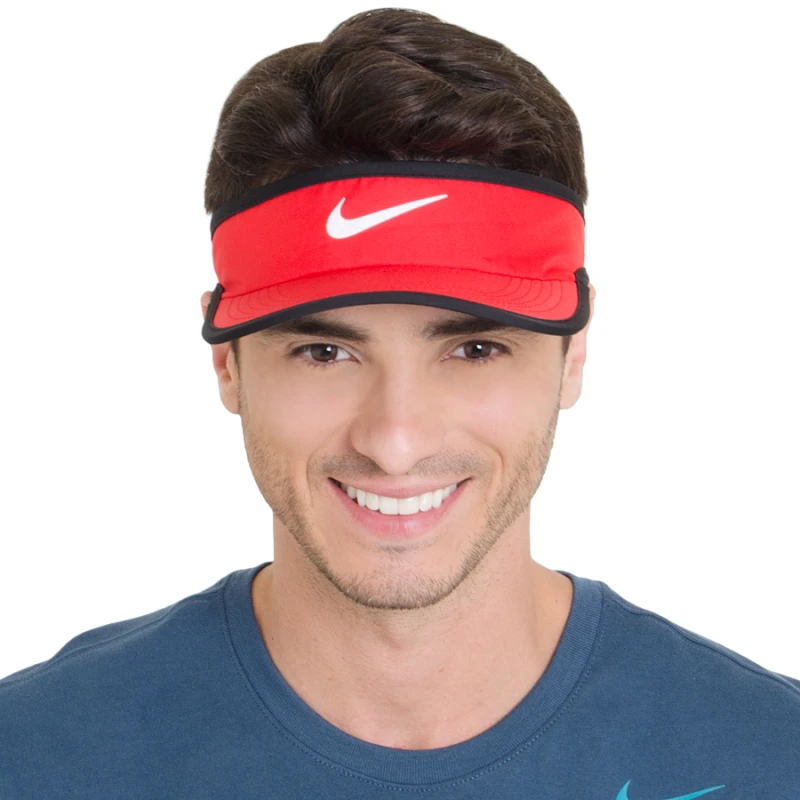 A Viseira Nike Featherlight Visor é uma boa pedida para os treinos e partidas em dias ensolarados, pois oferece proteção contra os raios solares, garantindo maior concentração dos jogadores além de um lindo look esportivo.