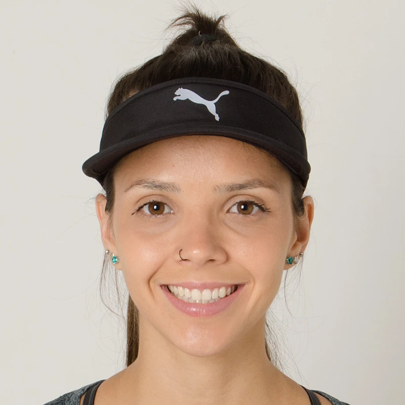 Medidas da modelo Tayse que usa a Viseira Puma Duocell Tech Visor II na cor: Preto