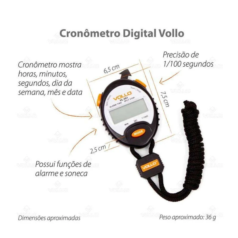 O Cronômetro Vollo 501 é um acessório indispensável para as atividades físicas, ideal para monitoração de treinos.